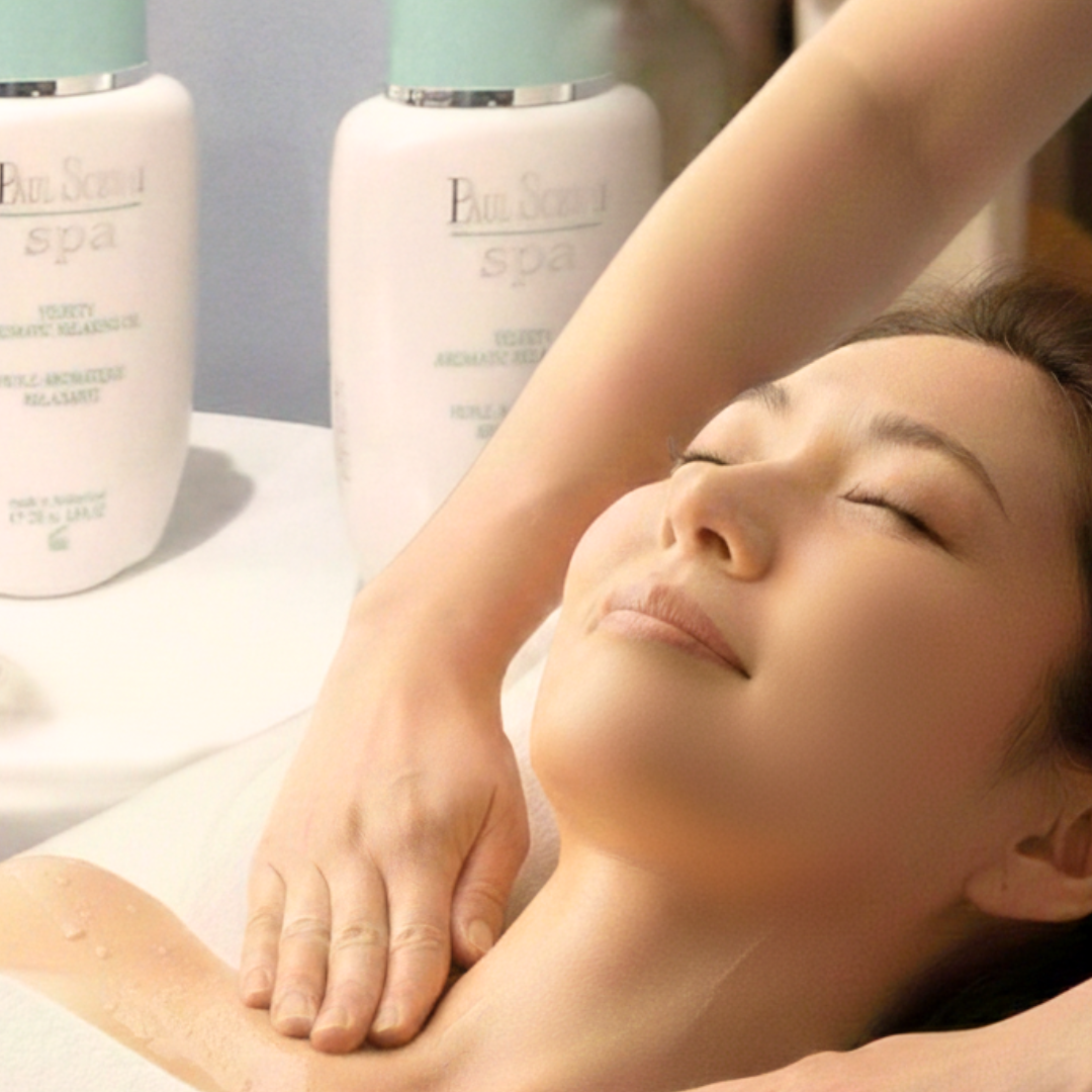 ダクトピールの施術には、ポール・シェリーを使用したデコルテマッサージをプラス。